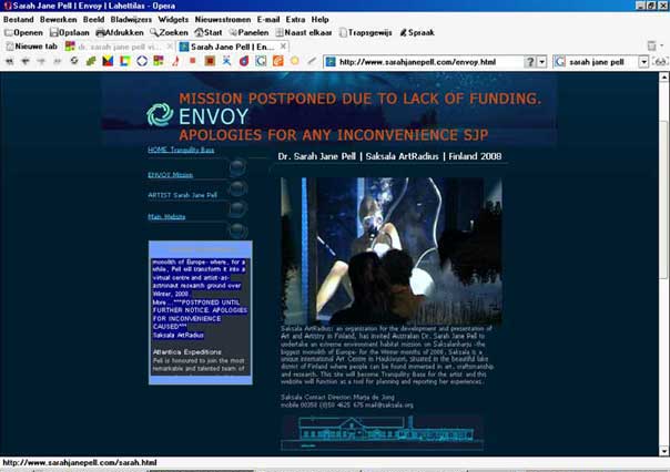 Saksala ArtRadius: an organization for the development and presentation of Art and Artistry in Finland, has invited Pell to undertake an extreme environment habitat mission on Saksalanharju -the biggest monolith of Europe- where, for a while, Pell will transform it into a virtual centre and artist-as-astronaut research ground over Winter, 2008. More...***POSTPONED UNTIL FURTHER NOTICE. APOLOGIES FOR INCONVENIENCE CAUSED***
