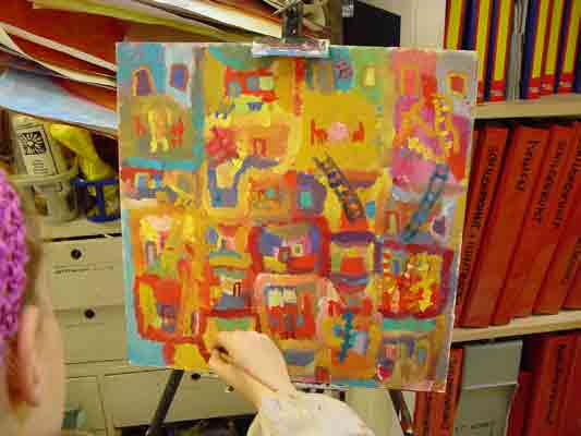 rakennetaan maalausta ja piirustusta, miten edetään työssä, miten