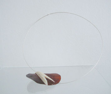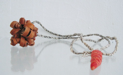 birch bark, silver, carnelian, bone buttons