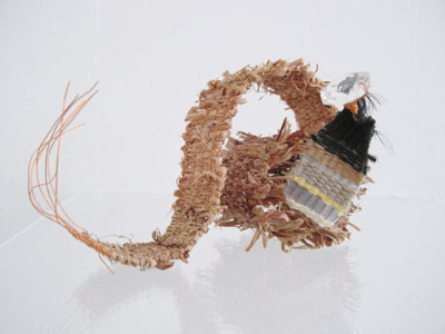 bark of willow, artificial hair, linen, crysta