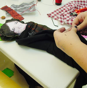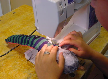 connecting parts together with sewing machine