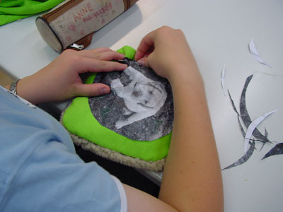 with glitters, buttons and so new elements come in the work